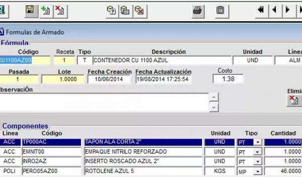 Creación de formulas de producción.