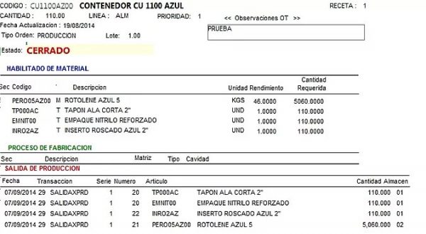 Trasabilidad en ordenes de producción.